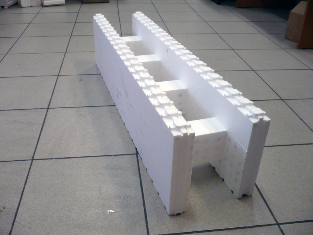 Прямой блок состоит из двух пенополистирольных пластин, соединенных между собой пенополистирольными перемычками.