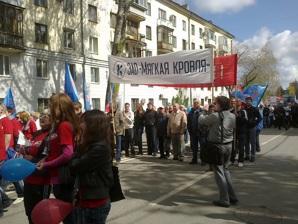 Завод «Мягкая кровля» принял участие на митинге посвященный Первому маю. Праздничное шествие трудящихся с транспарантами прошло от Дворца Спорта ЦСК до площади Куйбышева.