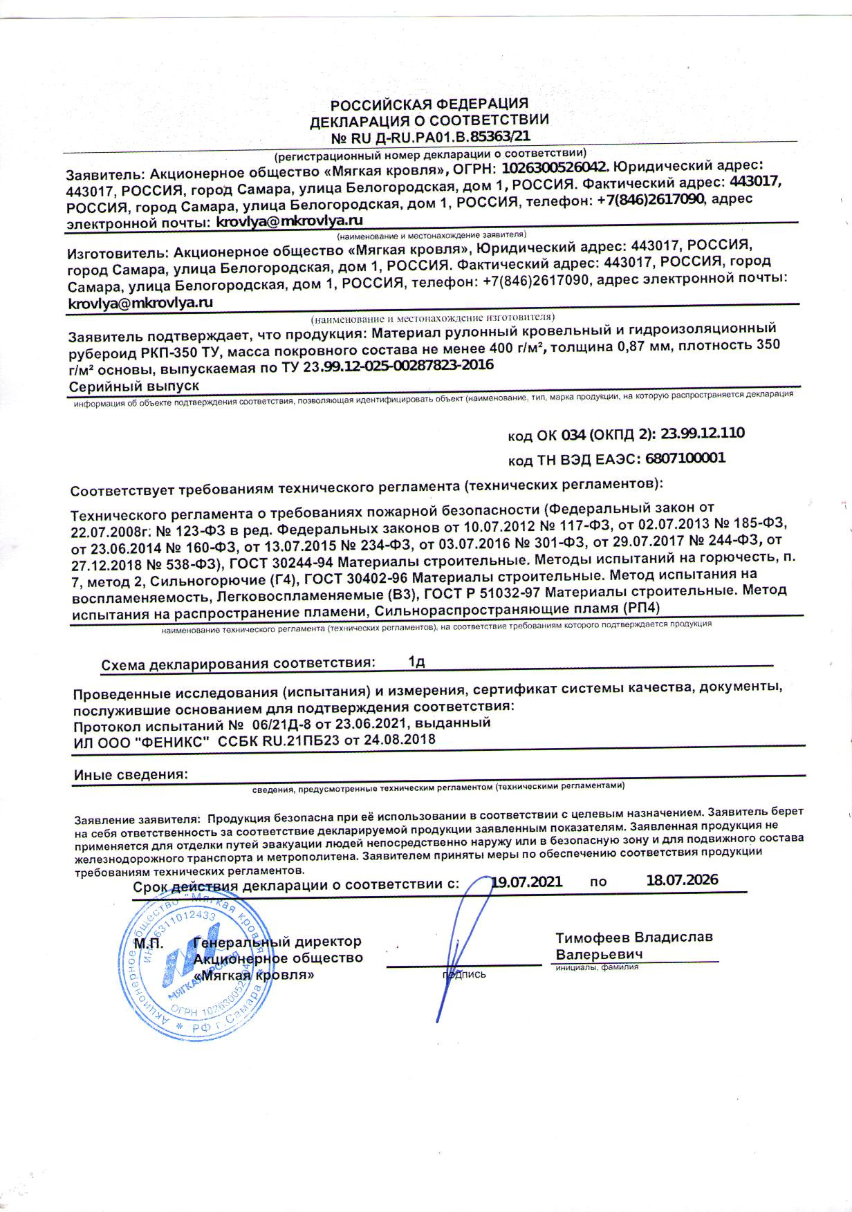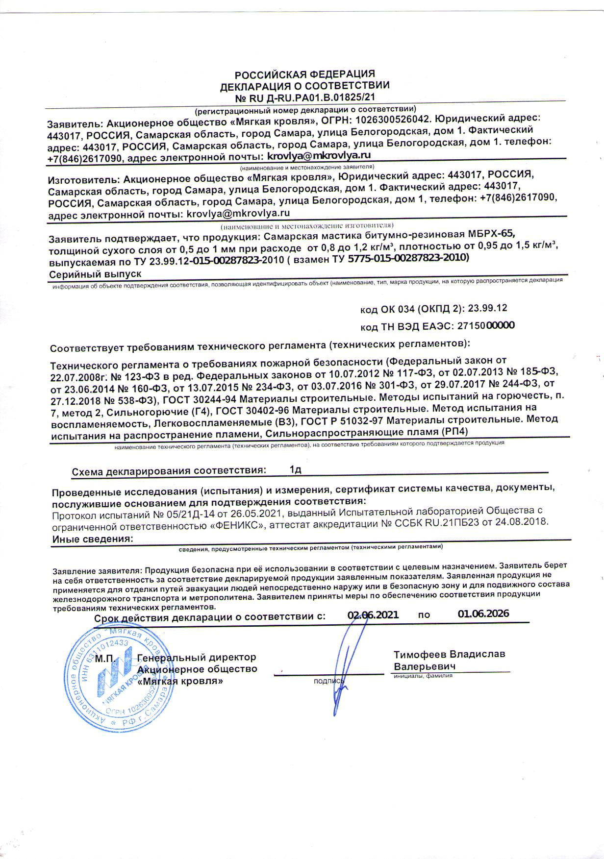 Декларация Соответствия Самарская Мастика Битумно-Полимерная